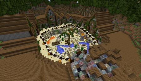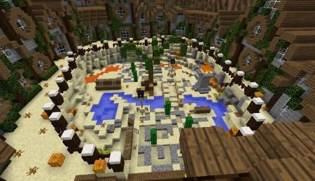Майнкрафт Покет Эдишн — зона выживания и сражений. Если уж и проводить битвы с другими игроками, то на крутых, тематических аренах.Представляем вам парящий остров для сражений. На вершине острова находится боевая зона. Она окружена густым лесом. Внутри зоны, в роли стенок арены, расположились фасады зданий, что смотрится очень круто. В некоторых из них спавнятся монстры.