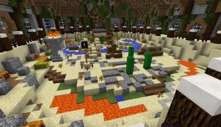 В центре находится зона с ловушками. Именно там и начинаются сражения. Есть множество ямок с лавой и паутиной. Это затруднит быстрое перемещение.