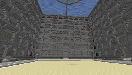 Майнкрафт — разносторонняя игра. В ней игрокам приходится сражаться с монстрами или друг с другом. Часто проводятся даже турниры, где игроки выясняют кто же лучше. Чтобы провести полноценный, масштабный турнир игрокам не помешает крутая арена.Представляем большую арену для проведения турниров. Площадка максимально простая, но с большим количеством зрительских мест, чтобы пользователи, которые не участвуют в боях, могли наблюдать со стороны.