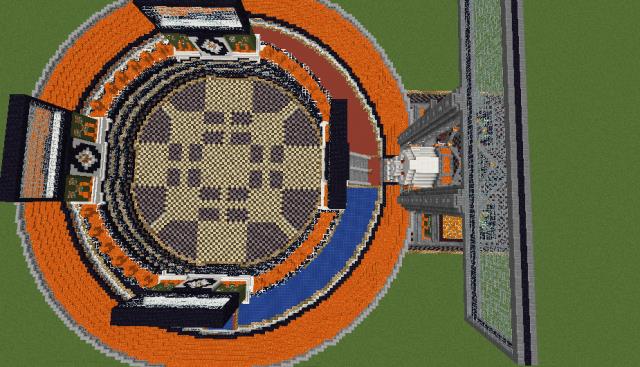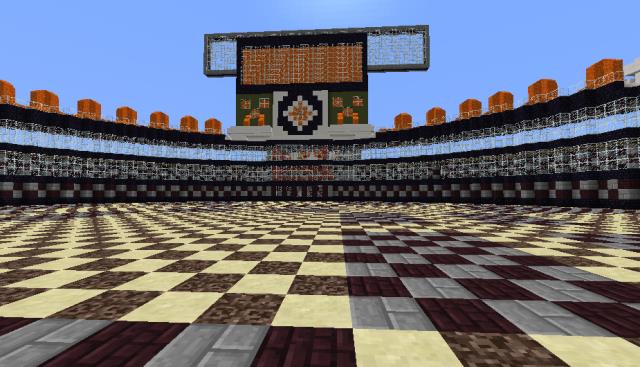 Арена разделена на несколько зон. В зоне со входом есть огромная площадка для подготовки игроков. Там же можно устроить выставку снаряжения. Далее пользователь попадает в зону зрителей, которая огорожена стеклом. А по центру арены уже находится огромное, плоское поле для проведения мероприятий.