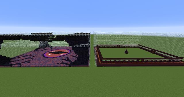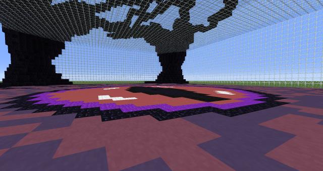 На некоторых серверах часто проводят турниры и соревнования. Для этого создаются специальные площадки или арены. Обычно там удобно сражаться из-за подготовленной территории.Представляем готовый вариант двойной арены для мира Minecraft. Постройка состоит из двух частей или арен. Первая площадка украшена пиксель артом глаза. Сверху и по бокам есть специальные горные наросты.