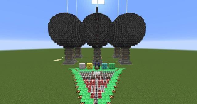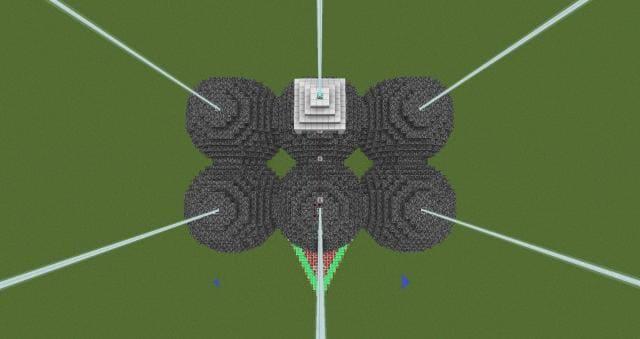 Красивая арена для игрового мира. Постройка сделана в форме нескольких больших шаров, которые соединены между собой. Внутри достаточно просторно и пусто.Перед ареной стоит небольшой командный центр, который не работает. Если умеете пользоваться командными, можете спокойно перепрограммировать Командные блоки и использовать для разных целей.