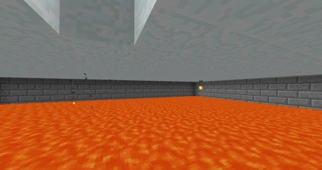 Пол внутри сделан из Снега, что упрощает поломку, а под ним огромный ров с лавой. Падение будет для игрока смертельным, ведь подъемов нет.