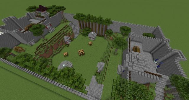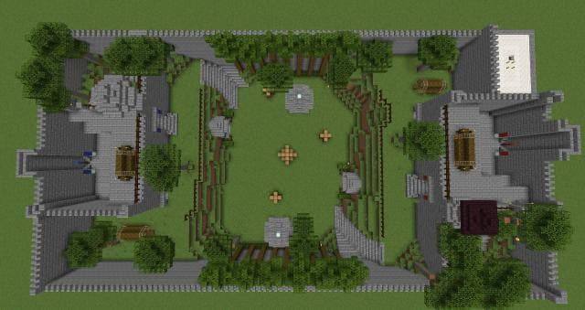 Командная арена для сражений. Разделена на две части: зону красных и зону синих. Благодаря этому будет удобно биться двумя группами. На зданиях есть синие и красные отметки.Автор вдохновился знаменитым полем битвы «Ущелье песни войны» из серии игр «World of warcraft». Игроки вселенной войны и ремесла сразу узнают похожие места.