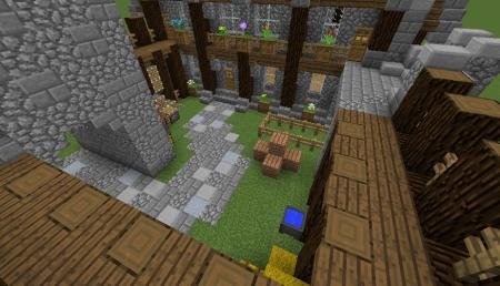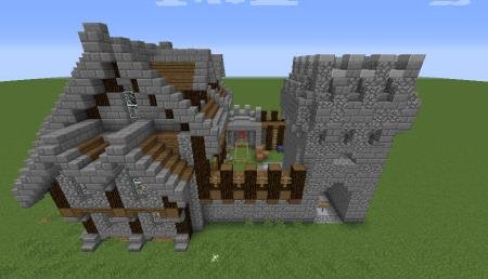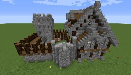 Для выживания в Minecraft PE требуется хорошее убежище. Постройка и обустройство занимает время. Поэтому предлагаем готовый вариант.Постройка в виде небольшого, но уютного замка. Все оформлено в средневековом стиле. Кроме основного здания есть внутренний двор, огороженный высокими стенами. Двор тематически обставлен. Внутри три просторных этажа, которые игрок может оформить по своему вкусу.