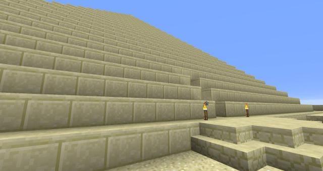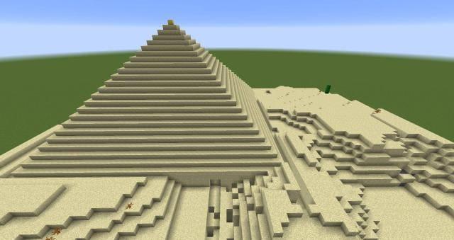 Пирамиды периодически встречаются в Майнкрафт. Игроки отправляются туда, чтобы найти ценные ресурсы. Мы же предлагаем использовать такие здания для украшения игрового мира.Представляем пирамиду средних размеров из песчаника и песка. Вокруг основного здания есть небольшая часть территории, которую можно обустроить на свой вкус.