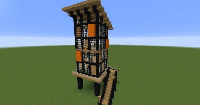 Красивый, необычный домик в современных тонах. Постройка немного приподнята над землей. Состоит из 5 полноценных этажей. Часть из них обустроена и подготовлена. Игроки смогут сразу заселиться и выживать.Если установить ряд таких домов, сделать улицу и облагородить район, получится красивый, богатый край. Постройка подойдет даже для городских условий.
