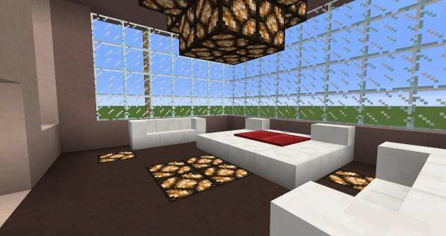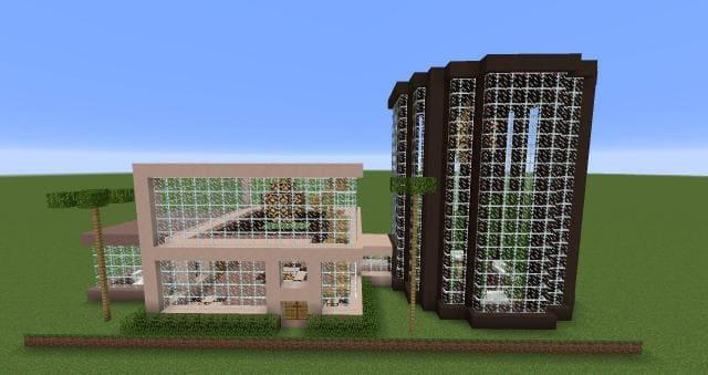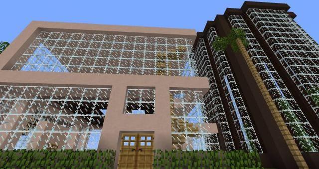 Многие игроки хотели бы жить в красивом, обустроенном доме в Майнкрафт. Строительство такой базы занимает слишком много времени, да и не у каждого все получится с первого раза. Поэтому предлагаем игрокам взглянуть на готовый вариант!Большой дом в современном стиле. Жилище разделено на две части. Все смотрится достаточно футуристично. Есть несколько этажей. Часть комнат подготовлена к заселению игроков. Есть даже огромные люстры для освещения в ночное время.