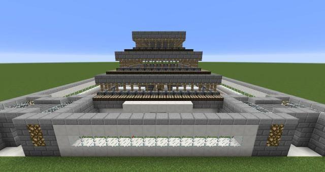 Небольшой храм с системой защиты для Майнкрафт. Постройка полностью подготовлена к нашествию монстров. Благодаря механизмам крыша постройки и все входы открыты днем и закрыты в ночное время.Когда крыша открыта, внутри постройки светло и помещение становится немного шире. Зато в ночное время открывается проход в боковые места для садов, чтобы игроку было не скучно.