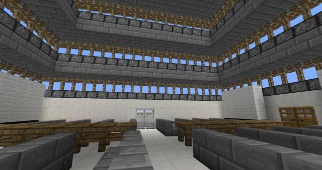 Внутри храма нет ничего лишнего. Несколько столов и стоек чисто для украшения мира. Можете все сломать и переоформить в Minecraft Bedrock!