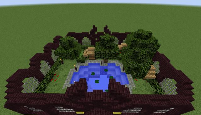 Хотите украсить территорию вокруг дома, но не знаете как? Добавьте туда небольшой садик для мира Майнкрафт! У нас есть готовые варианты, где можно спокойно отдохнуть!Представляем небольшой садик для мира Майнкрафт. Он небольшой, но очень красивый. Вокруг сада возведен забор, стилизованный под адскую тематику. Все смотрится гармонично и красиво.