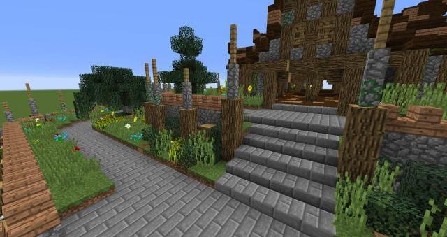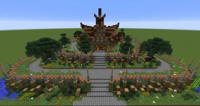 Когда игрок убивает дракона, начинается процесс обустройства игрового мира. В этом отлично помогают различные постройки. Мы предлагаем игрокам самые необычные варианты.Красивый спавн, который можно использовать в качестве сада. В самом центре территории стоит небольшая постройка. Внутри есть свободное пространство. Вокруг здания обилие растительности.