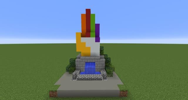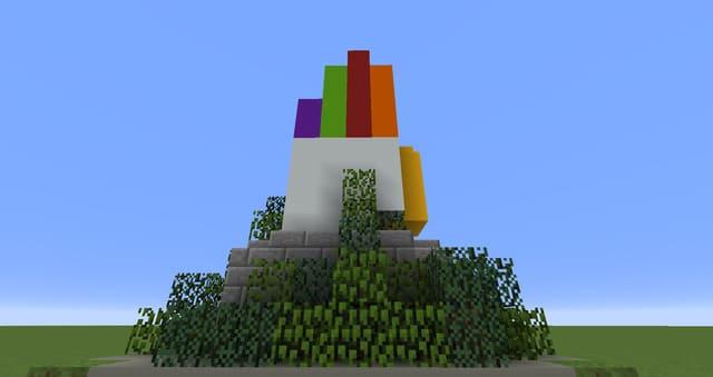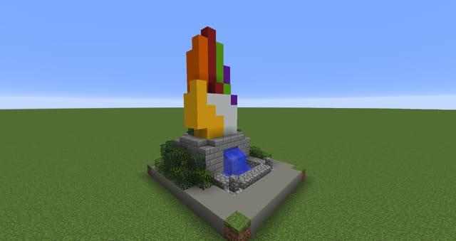 Красивая статуя руки для украшения игрового мира. Кисть напоминает перчатку бесконечности Таноса. Пальцы сделаны цветными, поэтому постройка смотрится красочно.Сама фигура небольшая, поместится даже на небольшом участке двора. Кисть стоит на постаменте из которого течет мини-фонтан. Так же есть парочка кустиков, для озеленения постройки.