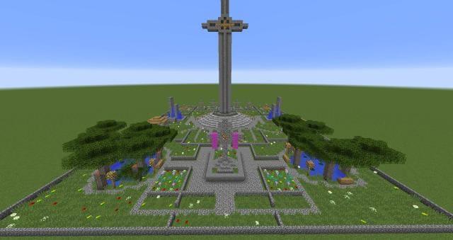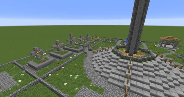 Если убрать часть крестов и посадить на их месте деревья, получится красивый и простенький сад для игрового мира. В оригинальном виде постройка подойдет для украшения территорий замка.