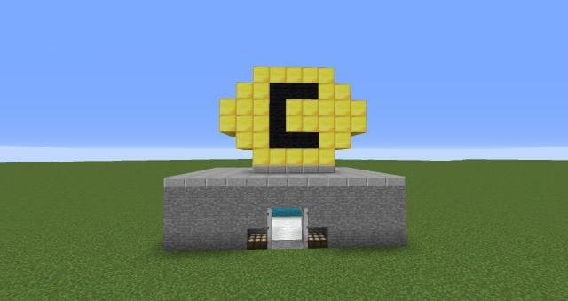 Чем больше разнообразных зданий в игре, тем лучше выглядит кубический мир. Поэтому предлагаем пользователям взглянуть на красивый, простенький вариант банка.Здание не занимает много места. Вход оборудован механизмами и автоматически закрывается в ночное время. Над постройкой красуется желтая монетка.