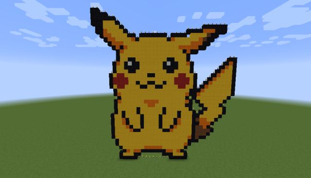 Игроки любят строить в Майнкрафт Бедрок различных животных. Особенно хорошо подходят для этого знаменитые персонажи мультфильмов. Автор сегодняшней постройки решил воспроизвести одного из таких!Представляем большой пиксель арт одного из самых знаменитых покемонов — Пикачу. Работа получилось очень красивой и проработанной. Кроме того, автор добавил множество факелов, чтобы статуя радовала игроков даже в ночное время.