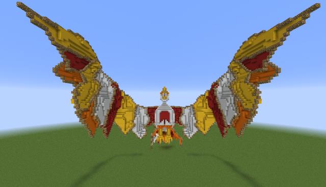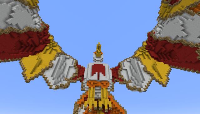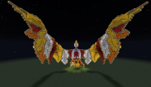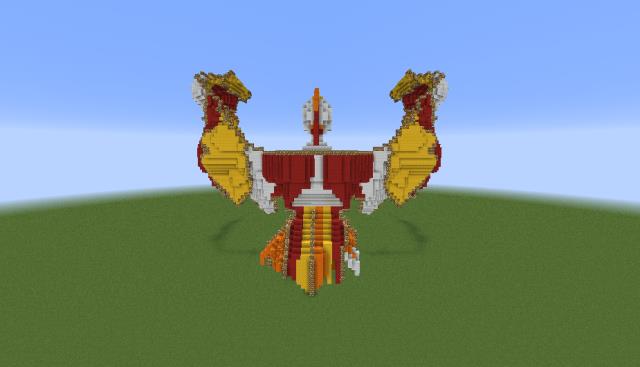 Игроки строят различные пиксель арты в мире Майнкрафт. Это трудоемкий, длительный процесс, который не всем по зубам. Поэтому мы иногда выкладываем достойные варианты, чтобы игроки могли украсить мир, без лишних проблем.Представляем большой пиксель арт в виде феникса для кубического мира. Фигура большая, поэтому смотрится эпично и красиво. В теле фигуры есть светящиеся элементы, поэтому постройка светится даже ночью. Это смотрится очень круто!