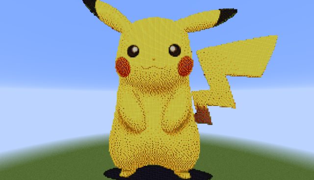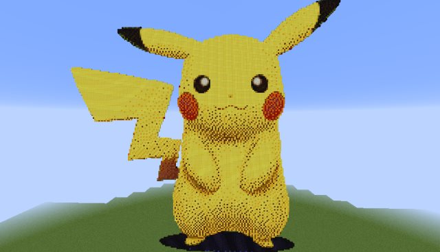 Пикачу — любимый герой детства многих игроков. Каждый хотел стать обладателем такого питомца. Поэтому один из фанатов решил посвятить ему красивый пиксель арт.Представляем фигуру Пикачу для мира Minecraft Bedrock. Проект получился большим, поэтому автор смог проработать каждый элемент. Благодаря ярким краскам этот арт сможет украсить любой игровой мир. К тому же, работа получилась максимально реалистичной!