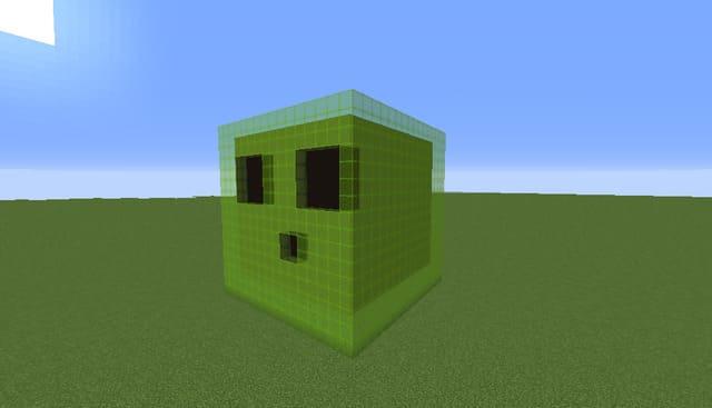 Игроки любят строить существ из мира Майнкрафт в виде пиксель артов. Обычное такие существа получаются намного больше своих оригиналов.Автор сегодняшней постройки решил посвятить работу огромному слайму. Существо смотрится реалистично и красиво. Постройка в два раза выше стандартных деревьев. У моба есть лицо.