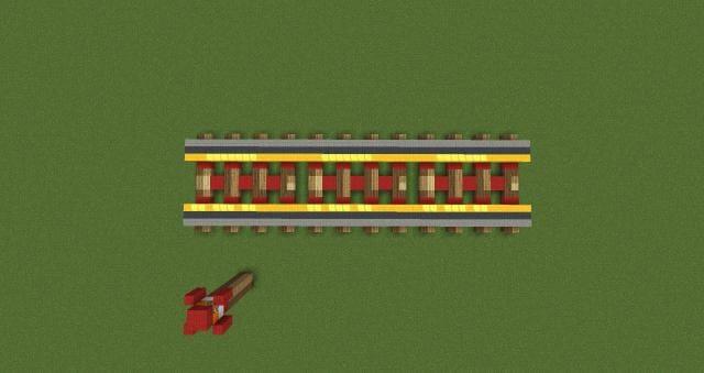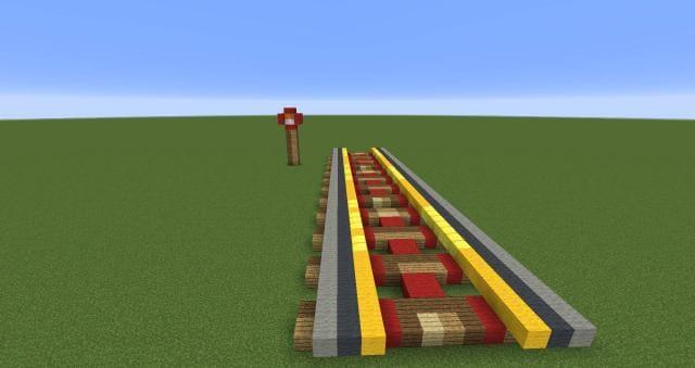Большой пиксель арт Механических рельс для игры. Постройка массивная, но красивая. Рядом с рельсами стоит большая имитация Красного факела. С расстояния постройка смотрится очень реалистично.Этот пиксель арт идеально подойдет для украшения игрового мира. Установите постройку где-то рядом с лабораторией или с железнодорожными путями, там она будет смотреться еще лучше.