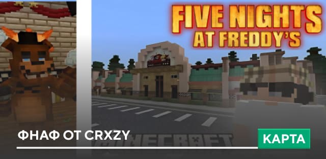 И вновь добро пожаловать в пиццерию Фредди, где нас любезно встретят роботы, переодетые в костюмы милых зверей. Естественно, по ночам эти звери будут не такими милыми, и тебе придется уносить оттуда ноги. Аниматроники не дадутся без боя, поэтому тебе нужно сразиться с ними на карте CrXzy's Custom FNaF в Minecraft.