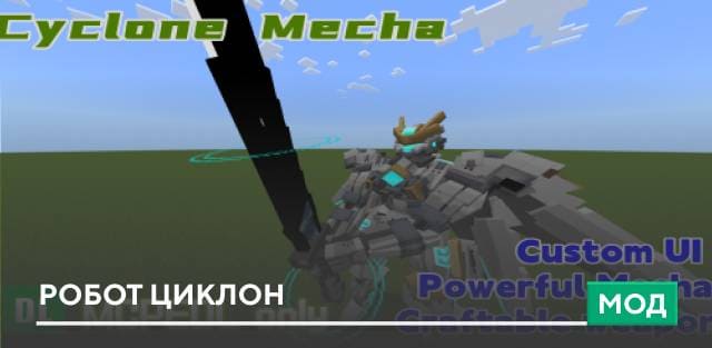 Мод Cyclone Mecha добавляет мощного робота, на котором ты сможешь передвигаться, как на транспорте и сокрушать всех врагов в
