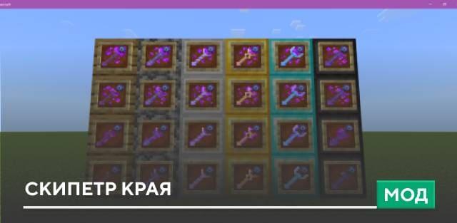 Мод Ender Scepter предлагает ускорить перемещения по Майнкрафт с помощью особого инструмента — Скипетра Края. Оружие позволяет быстро телепортироваться туда, куда смотрит персонаж. Работает аналогично Жемчугу Края и может нанести урон при телепортации.