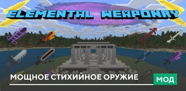 Мод Elemental Weaponry вводит 12 типов оружия в твои миры выживания Minecraft, начиная от мечей-молний и заканчивая оружием, которое стреляет настоящими черными дырами. Дополнение сделает игрока невероятно могущественным, способным убить любого моба или игрока.