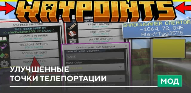 Меню точек телепорта- Можно удалять, менять и создавать телепортационные точки