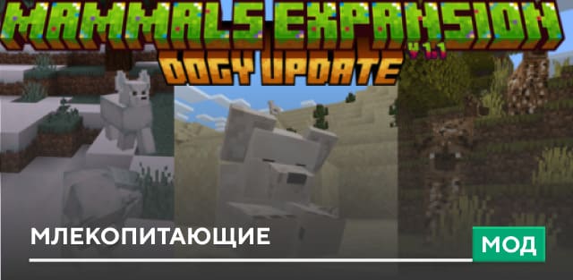 Мод Mammals Expansion содержит 3 новых вида Собак, которые будут спауниться в различных биомах Майнкрафт. Автор добавил возможность приручения животных, добавил необычное поведение, модели и довольно милые анимации. Ты сможешь отправиться в путешествия вместе со своими новыми питомцами.