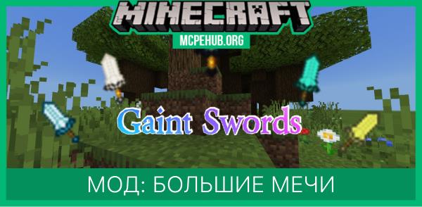 Мод Gaint Sword разработан одним из наших посетителей. Мы делимся этим великолепным творением с Вами. Сборка включает 10 видов мечей, урон которых значительно превосходит мощность классических орудий Minecraft. Ниже представлено описание каждого меча, его урон, крафт и внешний вид. Уникальная сборка, доступная только для наших посетителей. Последний, радужный меч, способен нанести целых 39 единиц урона, что в разы сильнее даже алмазного меча.