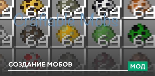 Мод Craftable Mobs - это очередное дополнение, которое позволяет крафтить предметы, доступные только в творческом инвентаре в Minecraft. Здесь представлен широкий набор рецептов для получения яиц призыва разнообразных мобов. При помощи них можно заспаунить практически любого моба, причем все это будет работать даже в режиме выживания. Используйте это, чтобы получить новый опыт геймплея в обычном режиме.