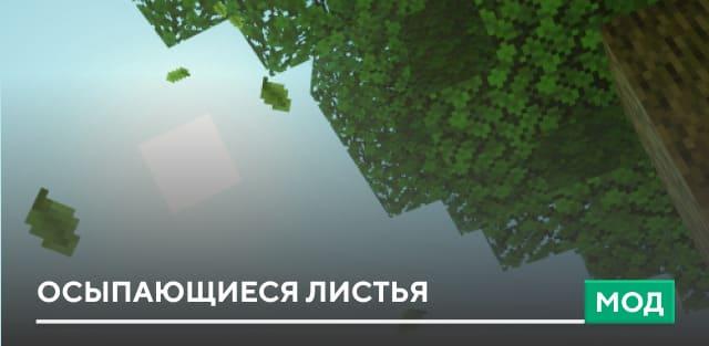 Майнкрафт ПЕ путем введения осыпающихся с деревьев листьев. Частицы имеют проработанную физику и анимацию, которая взаимодействует с блоками, которые находятся под деревьями. Также дополнение обладает высокой совместимостью с другими сборками.