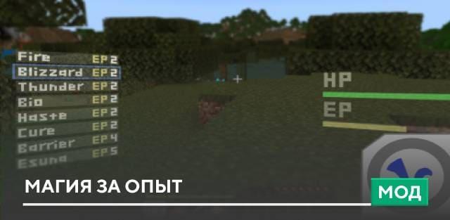 обновленное меню с представленными способностями, жизнью и опытом. Ты сможешь использовать заклинания, но при этом за каждое заклинание будет уменьшаться опыт. К тому же, автор поменял получаемый опыт с некоторых мобов.