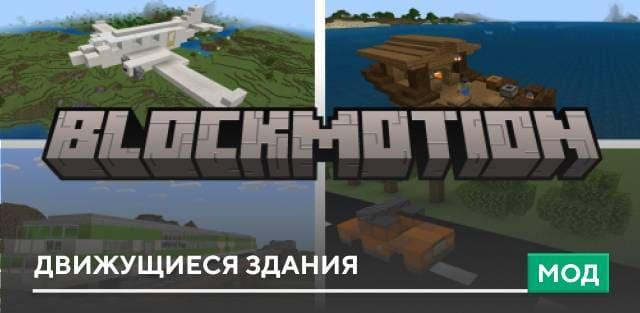 мода BlockMotion - Moving Buildings можно передвигать целые конструкции и постройки в Minecraft. Такая функция позволяет строить любые виды транспорта из блоков и управлять ими изнутри. Помимо транспорта, ты можешь придумать абсолютно все что пожелаешь: лифты, переносные склады и движущиеся декорации.