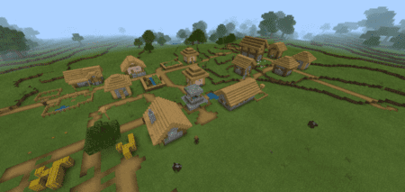 Здесь есть деревни с деревенскими жителями и железный голем. Войдя в мир, игроки обнаружат