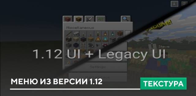 Текстуры1.12 UI + Old Legacy Uiвозвращают меню, которое было доступно игрокам в версии 1.12MCPE. Позже дизайн был заменен, но ты можешь вновь вернуть былое оформление при помощи этого дополнения. Используй эту сборку, если тебе нравился прежний дизайн и ты хотел бы его вернуть. Сборка включает 4 режима аддона.